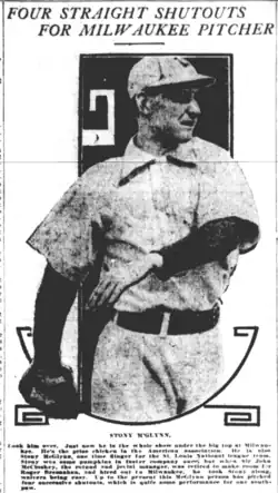Ulysses Simpson Grant "Stoney" McGlynn (May 26, 1872 – August 26, 1941) was an American professional baseball player who played pitcher in the Major Leagues from 1906 to 1908. He played for the St. Louis Cardinals.