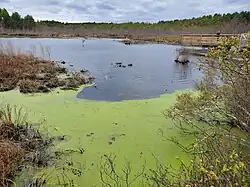 A 1 mile (1.6 km) trail encircles Stony Brook Pond, ending by a waterfall at the site of a former mill. The trail is wheelchair accessible and includes a[3] 525-foot long boardwalk, installed in 2017,[4][5] that allows visitors to view birds, wildlife, and the wetland habitat over Teal Marsh and Kingfisher Pond.[4] Wildlife found there includes turtles, ducks, geese, great blue herons, and muskrats.[3] The sanctuary also has natural history exhibits, programming space, a gift shop, nature play area, a picnic area, and a butterfly garden.[3][4]