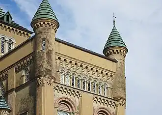 Stora Sundby Castle (Swedish: Stora Sundby slott) is a castle in Eskilstuna Municipality, Södermanland County, Sweden. The architectural features of the castle resemble those of a calendar, four large towers symbolizing the seasons, twelve small towers symbolizing the months of the year, 52 rooms symbolizing the weeks of the year, and a window for each day of the year (365). The architect was Peter Frederick Robinson.
