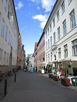 In the early 18th century the university had a total of 11 residences for professors in the street.[2] They were all destroyed along with the other houses in the street in the Copenhagen Fire of 1728.[3] Five of them were rebuilt in 1735 while the other six were not rebuilt until the 1750s. The houses were all designed by Joachim Frederik Ramus, professor in mathematics. They were of considerable size and each contained a single residence, demonstrating the high social status of the professors at the time.[2]