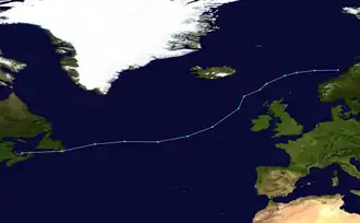 | Highest gust | 84 mph (135 km/h) (Belmullet, County Mayo, Ireland)[3] |