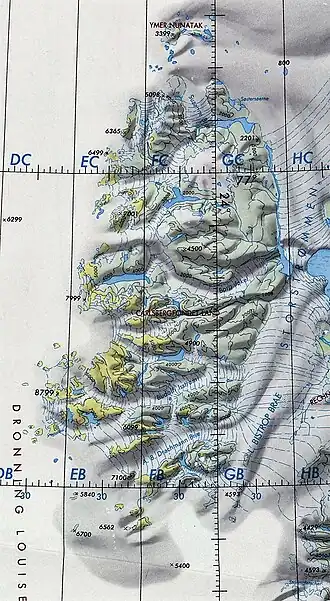 ![]() Queen Louise Land ONC map section with the Storstrømmen in the upper right | |