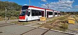 Built from 2014 onwards, they have been in service since 2015, gradually replacing older GTL8 trams. These trams operate on lines 2, 9, 11, 15, 16, and 17. Since 2023, their livery has been updated from grey-red to white-red to improve their visibility.[30][31] The Avenio trams feature wide, level boarding doors, dedicated spaces for wheelchairs and pushchairs, and digital information screens.[29]