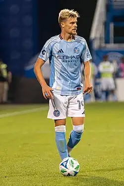 Strahinja Tanasijević (Serbian Cyrillic: Страхиња Танасијевић, pronounced [strǎxiɲa tanasǐːjeʋitɕ]; born 12 June 1997) is a Serbian professional footballer who plays for Major League Soccer club New York City.[1] He is capable of playing as a central defender or as a full-back on the right flank.[2]