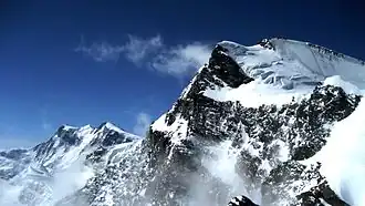 The Strahlhorn (4,190 m) is a mountain of the Swiss Pennine Alps, located south of Saas-Fee and east of Zermatt in the canton of Valais. It lies on the range that separates the Mattertal from the Saastal and is located approximately halfway between the Rimpfischhorn and the Schwarzberghorn.