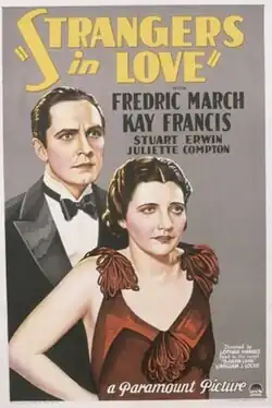 Strangers in Love is a 1932 American pre-Code comedy film directed by Lothar Mendes, written by Grover Jones, William J. Locke and William Slavens McNutt, and starring Fredric March, Kay Francis, Stuart Erwin, Juliette Compton, George Barbier, Sidney Toler and Earle Foxe. It was released on March 4, 1932, by Paramount Pictures.[1][2]