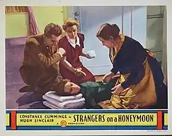 Strangers on Honeymoon is a 1936 British comedy film directed by Albert de Courville and starring Constance Cummings, Hugh Sinclair and Noah Beery, based on the 1926 novel The Northing Tramp by Edgar Wallace.[1] Much of the film takes place in Canada. It was made by Gainsborough Pictures at the Lime Grove Studios in Shepherd's Bush. The film's sets were designed by the art director Ernö Metzner.[2] Wallace's son (Bryan Edgar Wallace) also contributed to the film's screenplay, along with 5 other writers.[3]