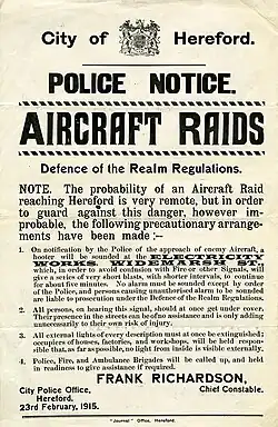 When William Weir, the President of the Air Council in 1918, told Hugh Trenchard that it was not necessary to worry about accuracy during strategic bombing raids, the general replied that "all the pilots drop their eggs into the centre of town generally."[3] After the formation of the Royal Air Force on 1 April 1918, the British Prime Minister David Lloyd George promised to repay Germany for its air raids "with compound interest".[3] On 19 July, the first aircraft carrier-based air raid in history, the Tondern raid, was launched against the German Zeppelin base at Tondern.