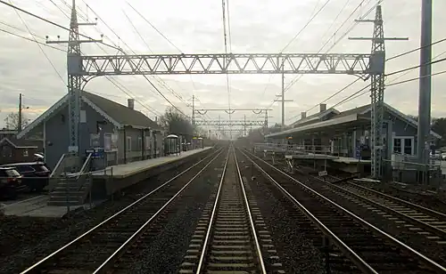 Stratford station is a commuter rail station on the Northeast Corridor in Stratford, Connecticut. It is served by the Metro-North Railroad New Haven Line plus limited CT Rail Shore Line East service. The station has two high-level side platforms, each four cars long, serving the four tracks of the Northeast Corridor.[2]: 22 The station has 294 parking spaces, which are all owned by the state.[3]