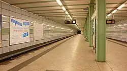 The entrances were moved and a new one was built.[2] In 2003, the station was renovated and green panels were attached to the walls.