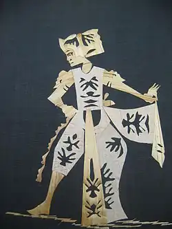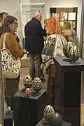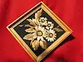 Easter eggs are decorated with straw applique, especially in Eastern European countries.[1] Geometric shapes, stars and flower motifs are the most common themes. There is a slight difference in the way the straw is prepared, however; for marquetry, the straws are soaked, split and ironed; for egg decoration the straw is not ironed.