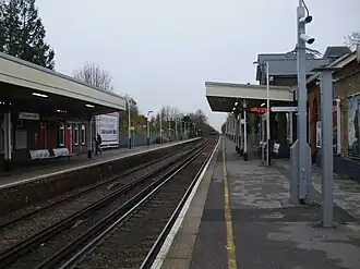 During the peak hours, the station is served by four morning services from Shepperton to London Waterloo and two evening services from London Waterloo to Shepperton.