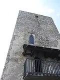 It is also called a bergried. It is a well preserved stone object with a floor plan of square of side 8 m. The tower is one of the oldest parts of the castle, dated to the period of emergence of the object at the beginning of the 14th century. Originally, it was a 5-storey building with wooden beam floors connected with the wooden ladders. The entrance was located at the second-floor level through the Gothic pointed-arch-shaped portal accessible through the small wooden bridge. A circular entrance to the 8 meter deep prison cell is located on the bottom floor. The tower was conceived primarily as a guard and a defensive tower, as indicated by the location of the entrance on the second floor and the low number of small windows. A residential function was provided by small building in the courtyard.