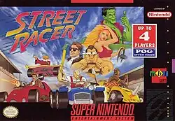 Street Racer is a racing video game published by Ubi Soft for various systems. It was released for the Super Nintendo Entertainment System in 1994,[5] Sega Mega Drive in 1995,[6] PlayStation,[7] Sega Saturn and Game Boy in 1996[8] and Windows[4] and Amiga in 1997.[9] Marketed as a "cross between Mario Kart and Street Fighter",[10] the go-kart themed game combined racing with comedy and beat 'em up influenced violence. The game was a success on the SNES and Mega Drive and received mixed reviews across platforms.
