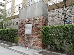 - December 14: about 300 men were taken from Pawiak for execution. About 70 convicts were shot in a street execution at 9/11 Wierzbowa Street (near Theatre Square). Over 100 men and one woman were shot at the wall of the ghetto at Bonifraterska Street (from the inside).[89][90] Although this second execution took place inside the closed zone of the former ghetto, it was visible from the windows of neighboring buildings (e.g., from the windows of the John of God Hospital), and until it was over, the Germans blocked Bonifraterska and adjacent streets (stopping tram traffic).[41] The remaining convicts mentioned in Pawiak reports were secretly executed in the ruins of the ghetto. The German announcement later included a list of 270 executed (this also included the names of hostages executed in secret and street executions on December 11, so it was underestimated by at least 110 victims compared to the actual number of Poles executed on those days).[89][91] The massacre was carried out in retaliation for Home Army combat actions – the blowing up of a German train near Celestynów and the successful assassination of Emil Braun, the head of the Municipal Housing Office in Warsaw.