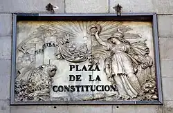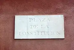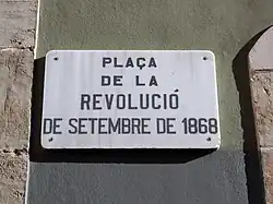 The liberal government of 1840 brought about the change of name of the Plaza de San Jaime to Plaza de la Constitución, taking advantage of the end of the rehabilitation works of the square and the City Hall. It bore this name until the beginning of the Second Republic in 1931, when it was changed to Plaça de la República, while in 1940 it was returned to its former name of Plaza de San Jaime.[66]