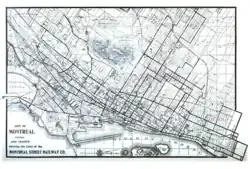 Prior to 1959, Montreal, Quebec, Canada had an extensive streetcar system. The streetcar network had its beginnings with the horsecar era of the Montreal City Passenger Railway in 1861. The initial line was along Rue Notre Dame (Notre Dame St) from Rue du Havre (Harbor St) to Rue McGill (McGill St).