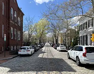 Today, some streetcars, car barns, trackage, stations, and rights-of-way exist in various states of usage. In the Georgetown neighborhood, remnants of tracks and conduit remain visible in the middle of O and P Streets NW between 33rd and 35th Streets NW, and near an M Street door of the Georgetown Car Barn.