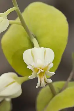 Streptanthus diversifolius is a species of flowering plant in the mustard family known by the common name variableleaf jewelflower,[1] or varied-leaved jewelflower. It is endemic to California, where it is limited to the Sierra Nevada foothills. It is a resident of woodlands and other foothill habitat. It is an annual herb producing a hairless, waxy stem up to a meter tall. The basal leaves are variable in shape and are often divided into narrow, threadlike segments. Leaves higher on the stem are also variable, having round to lance-shaped blades which clasp the stem at their bases. Flowers occur at intervals along the upper stem, with one or two leaflike bracts at the base of the raceme. Each flower has an urn-shaped calyx of keeled sepals about half a centimeter long and white, yellowish, or purple in color, sometimes with white edging. White, purple-veined petals emerge from the tip. The fruit is a thin, flat, curving silique which may be 8 or 9 centimeters in length.