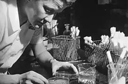 Bugie was pursuing a master's degree in Waksman's lab at Rutgers University at this time. Prior to this, she received her bachelor's degree in microbiology at New Jersey College for Women.[28] Although Bugie was considered to be the second author on the Proceedings of the Society for Experimental Biology paper, she was not listed on the patent submission.[28] Bugie's contributions to Waksman's lab were great. In addition to her work on streptomycin, she also helped develop other antimicrobial substances,[30] had two peer-reviewed publications,[31][32] and researched the use of antimicrobials against plant pathogens,[33] among several other important contributions to the scientific field, particularly in regard to microbiology.