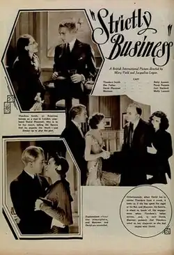 Strictly Business is a 1931 British comedy film directed by Mary Field and Jacqueline Logan and starring Betty Amann, Carl Harbord and Molly Lamont. It was made at Welwyn Studios as a quota quickie.[1][2]