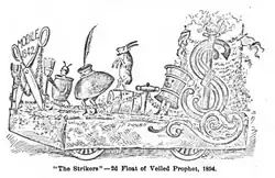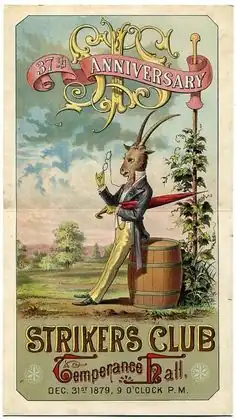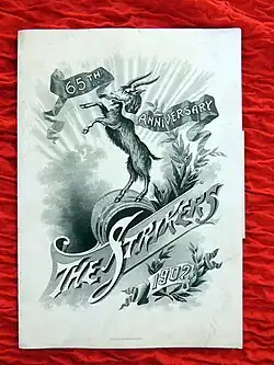 In 1852, they became the first mystic society to hold a ball at the Battle House Hotel.[2] By 1881, the Strikers Independent Society had discontinued their annual street parades, but continued to hold a grand ball on New Year's Eve, though in 1884, they paraded once more.[2]