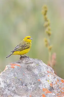 The stripe-tailed yellow finch (Sicalis citrina) is a species of bird in the family Thraupidae. It is found in Argentina, Bolivia, Brazil, Colombia, Guyana, Paraguay, Peru, Suriname, and Venezuela. Its natural habitats are dry savanna and pastureland.