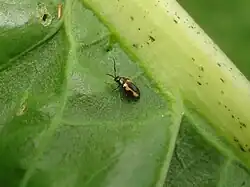 • Striped flea beetle. AVRDC - The World Vegetable Center (formerly Asian Vegetable Research and Development Center). Information from: Field Guide: Insect Pests of Selected Vegetables in Tropical and Subtropical Asia (1995). B.L. Parker, N.S. Talekar and M. Skinner. Publication 94-427.