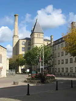 The council is based at Ebley Mill in the parish of Cainscross, a suburban town adjoining the west side of the town of Stroud. The mill was built as a woollen mill in 1818 and is a grade II* listed building. It was converted to become the council's offices between 1987 and 1990.[30]