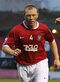 He rejoined former club Durham City, newly promoted into the Northern Premier League Premier Division, in June 2009 along with Brayson.[65] After Durham's financial problems led to all players being made available for transfer, he signed for Northern League Division One club Bedlington Terriers in September 2009, making a winning debut in the first qualifying round of the FA Vase.[66][67] He was later appointed captain.[68] He suffered a cruciate ligament injury before signing for Newcastle Benfield of the Northern League Division One in 2013.[69][70] He returned to playing after a year out injured, and signed for Northern League Division One club Ashington on 3 August 2014.[69][71]