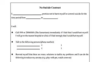 - ^ "Psychologists support Education Bureau's 'no suicide' student contracts | Hong Kong Free Press HKFP". Hong Kong Free Press HKFP. 15 March 2016. Retrieved 20 November 2017.