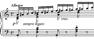 Frédéric Chopin's Étude Op. 10, No. 2: a rapid chromatic scale in the right hand is used to develop the weaker fingers of the right hand. Most études are written to perfect a particular technical skill.