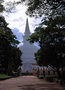 Stupas, also called dagebas and cetiyas, are considered an outstanding type of architectural creation of ancient Sri Lanka. Under the influence of Buddhism, there were several changes in the field of architecture in Sri Lanka. The stupa commands a prominent place among these changes. The Stupa is also known by synonymous names such as Chaithya, Dagaba, Thupa, Seya and Vehera.[1] Stupas designed and constructed in Sri Lanka are the largest brick structures known to the pre-modern world.[2]