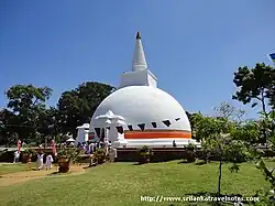 Mahiyangana Raja Maha Vihara in Mahiyangana, Uva Province is regarded as the first stupa of ancient Sri Lanka[3] The first historical stupa constructed after the arrival of Mahinda in Sri Lanka is Thuparamaya, which was built during the reign of King Devanampiya Tissa.[4] Afterwards many stupas were built, some colossal stupas, biggest of which is Jetavanaramaya.[5]
