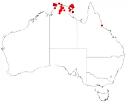 Styphelia acuminata mainly grows in heath and woodland in the Top End of the Northern Territory from Bathurst and Melville Islands to the Gulf of Carpentaria and as far south as Katherine.[2]