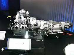 The automobile features a 2.0 litre flat-4 cylinder hybrid powertrain, which Subaru calls the Sequential Series Hybrid Electric Vehicle (SSHEV). In the SSHEV, the 134 hp (100 kW) electric motor alone is used to move the car up to 80 km/h (50 mph), at which point the 138 hp (103 kW) gasoline engine takes over.[1] Under 80 km/h (50 mph), the gasoline engine may be used to charge the battery or under heavy acceleration.[2] It is Subaru's first hybrid powertrain,[3] and Subaru president Kyoji Takenaka stated that existing conventionally-powered Subaru models required "no modification" to install the SSHEV.[2]