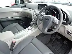 North American market Tribecas offered two trim levels— Base and Limited, the latter added a moonroof, leather interior, roof rails for enhanced cargo carrying and a premium audio system with six-disc in-dash CD changer. The interior colors were somewhat limited to either light ("Desert Beige") or dark ("Slate Gray"), both colors finished in either cloth (on the base model) or leather (exclusive to the Limited model) trim. For the leather-trimmed models, no interior color choice was available; due to the interior color being determined by the exterior color.[23] In 2007, the beige cloth trim was dropped and the base model was now only available in just two exterior colors.[16] The North American market 2006 to 2007 year model B9 Tribeca also had smaller wing mirrors that were upgraded to the larger European market mirrors starting in model year 2008.