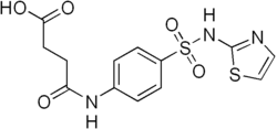 Succinylsulfathiazole (also known as sulfasuxidine) is a sulfonamide.[1][2] It is also spelled as succinylsulphathiazole. It is a white or yellow-white crystalline powder. It dissolves in aqueous solutions of alkali hydroxides and carbonates but is very slightly soluble in water.