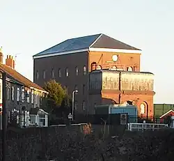 Also built was a large pumping station, required to pump water from the tunnel, including three large brick engine houses housing six steam engines, and ventilation towers. A branch line was built from the nearby Gloucester-Newport line to supply the pumping station with coal and engineering equipment, but fell into disuse in the early 2000s, and has now been disconnected from the main line.[7] The steam engines were replaced by electric motors in 1962, and the chimney stacks taking smoke from the furnaces were demolished in 1968.[1]