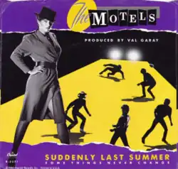 "Suddenly Last Summer" is a song by American new wave band the Motels, released as the lead single from their fourth album, Little Robbers (1983). The single peaked at number nine on the US Billboard Hot 100 and topped the Billboard Rock Top Tracks chart. In Canada, it climbed to number 11 and ended 1983 as the country's 98th-best-selling single. The B-side of the 7-inch single is "Some Things Never Change," and the song was included on the 1990 compilation album, No Vacancy – The Best of The Motels.