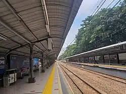 This station has two railway tracks. Both tracks are straight tracks without railroad switch.