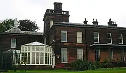 Upon the death of Robinson in 1854, the house passed to his two daughters, who died in 1883.[3] The house and estate, comprising just under 30 acres (12 ha), was put up for sale in 1880.[5] It became the home of Victorian shipping-line owner and merchant George Holt in 1884.[6] Pevsner says that the original design was probably by John Whiteside Casson and was modified by James Rhind when Holt purchased it.[1][2] However, National Museums Liverpool say that the original architect is unknown, although there are features that suggest it may have been Thomas Harrison.[3]