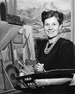 Sue Jean Covacevich, born Sue Jean Hill (February 15, 1905 – May 14, 1998) also called Sue Jean Covacevich Boys, was a pioneering artist from Wellington Kansas, United States. Her vivid art in painting, prints, murals, and stained glass celebrates the Kansan landscape, and was heavily impacted by her time spent living in Mexico, and her extensive international travels. Teaching art at all education levels for over 40 years, she established the Winfield Art Center, and her work introducing art therapy at the Winfield State Hospital and Training Center awarded her an honorary doctorate of arts degree from Southwestern (Kansas) College.[2][3][4]