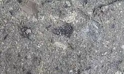 Suevite is thought to form in and around impact craters by the sintering of molten fragments together with unmelted clasts of the country rock. Rocks formed from more completely melted material found in the crater floor are known as tagamites. Suevite is distinct from the pseudotachylite in an impact structure as the latter is thought to have formed by frictional effects within the crater floor and below the crater during the initial compression phase of the impact and the subsequent formation of the central uplift.[3]