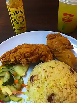 Key highlights of the menu include SugarBun's Broasted Chicken, hailed as their top-selling item;[10] additionally, patrons have the opportunity to savour a spicy variant of this popular dish known as Lak Lak Chicken. These dishes are often complemented with Savory Rice and pickles, which are considered signature accompaniments. Alternatively, mashed potatoes and coleslaw are available as options to complete the meal.[11]