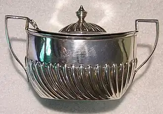 The second half of the 18th century witnessed the replacement of silver by porcelain in the tea sets in order to match the cups, and the porcelain sugar bowls came into vogue.[2]