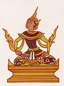According to Burmese legend the site where the Sule pagoda now stands was once the home of a powerful nat (spirit) named Sularata (the Sule Nat). The king of the Nats, Sakka, wished to help the legendary king Okkalap build a shrine for Lord Buddha's sacred hair-relic on the same site where three previous Buddhas had buried sacred relics in past ages. Unfortunately, these events had happened so long ago that not even Sakka knew exactly where the relics were buried. The Sule nat, however, who was so old that his eyelids had to be propped up with trees in order for him to stay awake, had witnessed the great event. The gods, Nats and humans of the court of Okkalapa therefore gathered around the Sule nat and asked him the location, which he eventually remembered.