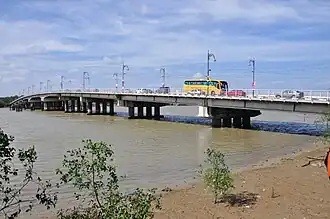 The Sultan Ismail Bridge (Malay: Jambatan Sultan Ismail; Jawi: جمبتن سلطان اسماعيل) is a bridge in Muar town across the Muar River in Johor, Malaysia. It was the first bridge built across a river that connects Bandar Maharani, Muar to Tanjung Agas which is now named as part of Tangkak district.[1] The bridge replaced old ferry services in the 1960s. The bridge was originally a toll bridge making the second toll bridge in Malaysia after Sultan Yahya Petra Bridge in Kelantan (opened in 1967).