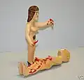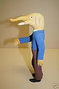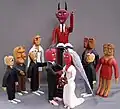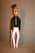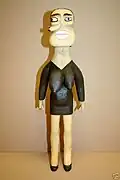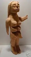 Rogers referred to his carvings as "haints" and primarily carved humans with oversized features. The oversized features included multiple eyes, animals coming out of body parts, and extra breasts.[1] He would also carve multiple related carvings known as "haint houses".[2] These pieces sometimes included dollhouses that would be filled with the human carvings. While he normally carved people, he would also carve animals.