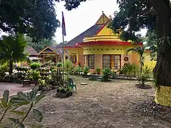 In 1932, the Dutch constructed the Balai Kuning, a tall administration building in a European half-timbered style.[5] The foundation stone from 11 February 1932, with Dutch inscription, is still visible on the northern wall. The building houses various weapons and clothing used by previous sultans, and is surrounded by a park, with two canons dating from colonial times.